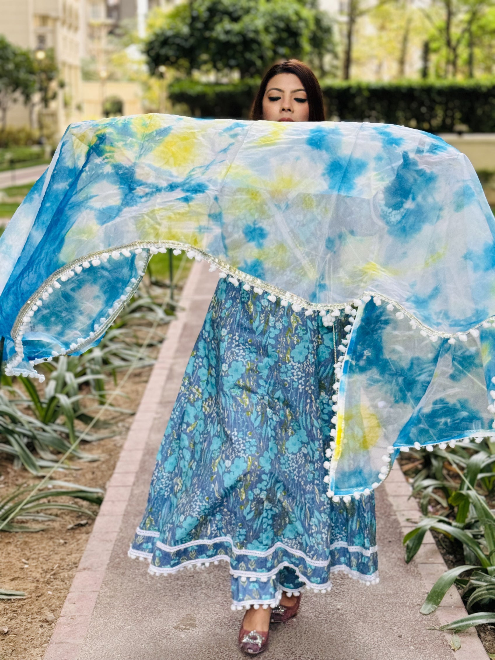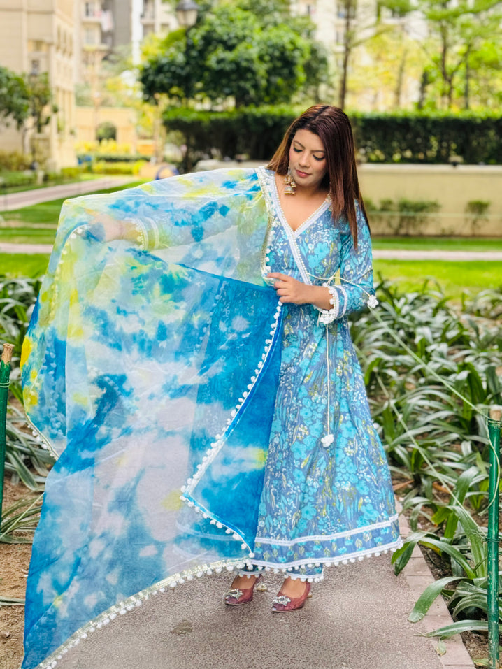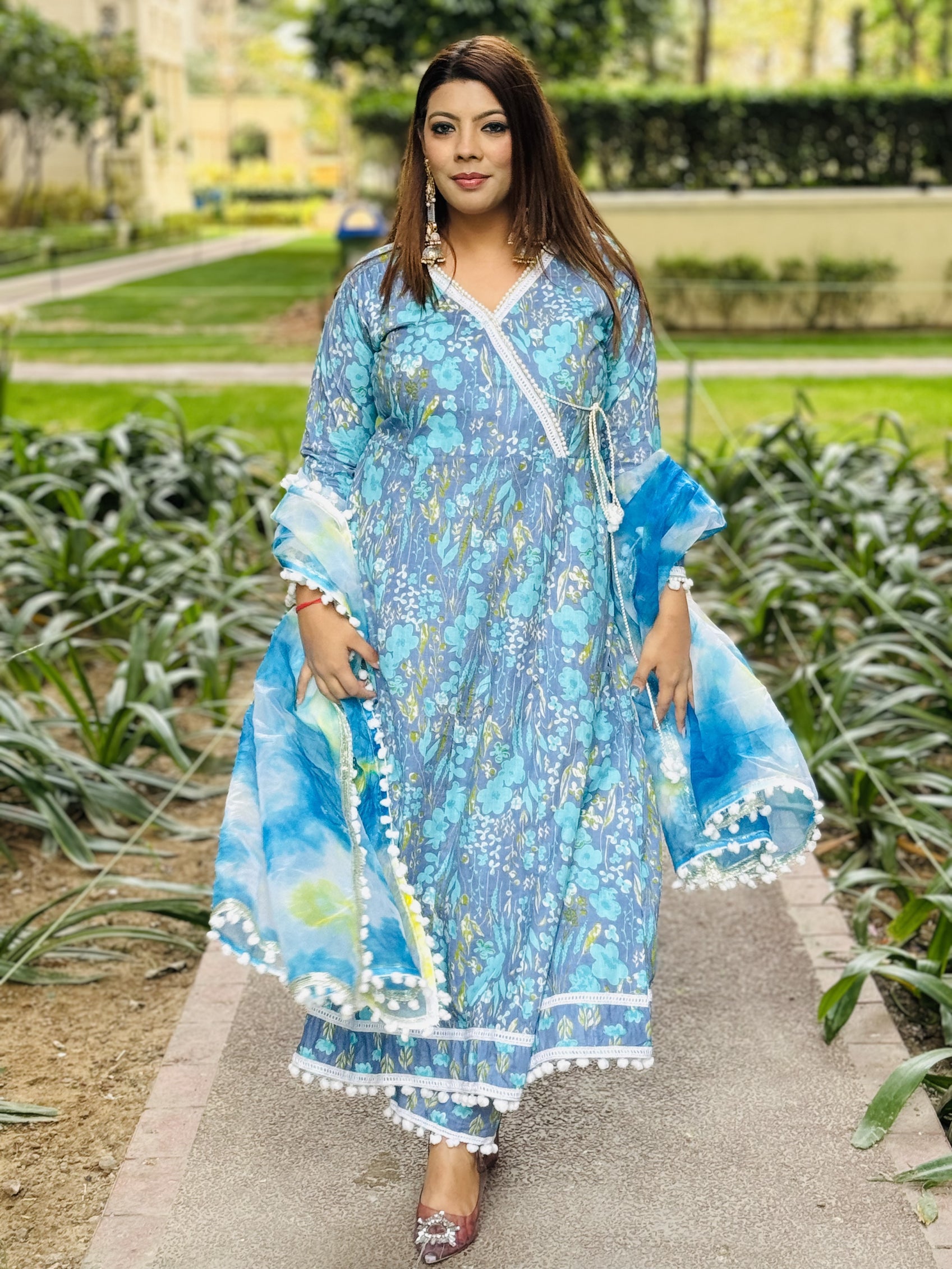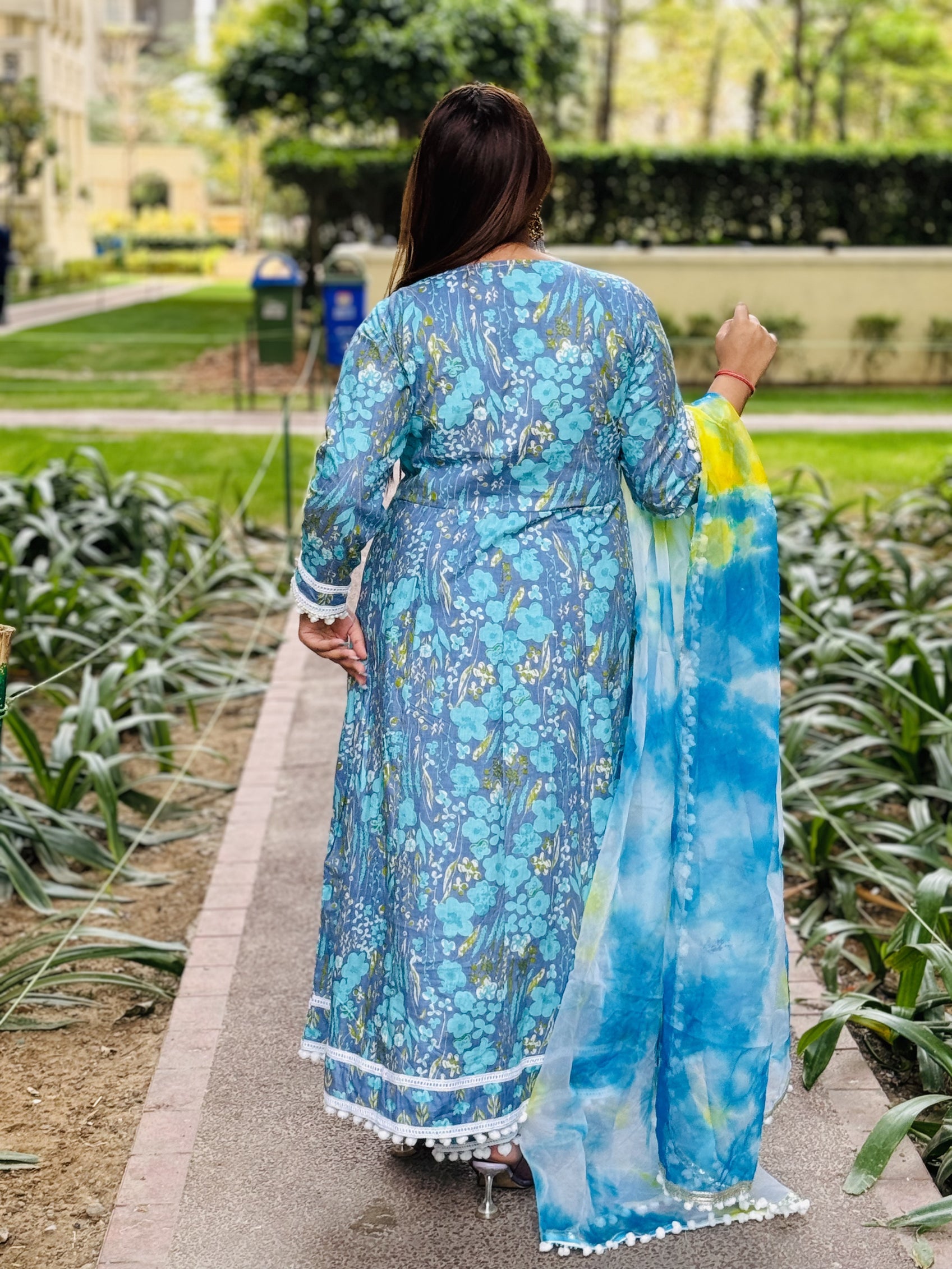 Step into elegance with our Blue Anarkali, crafted from rich cotton. A perfect anarakli for Indian festivals, weddings, and celebrations. Available in sizes 34-46.