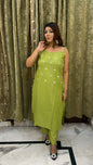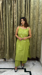 Pure Cotton Green Mirror Work Noodle Strap Kurta Set with Pants – Sizes up to 46