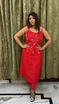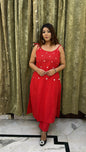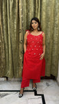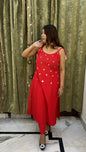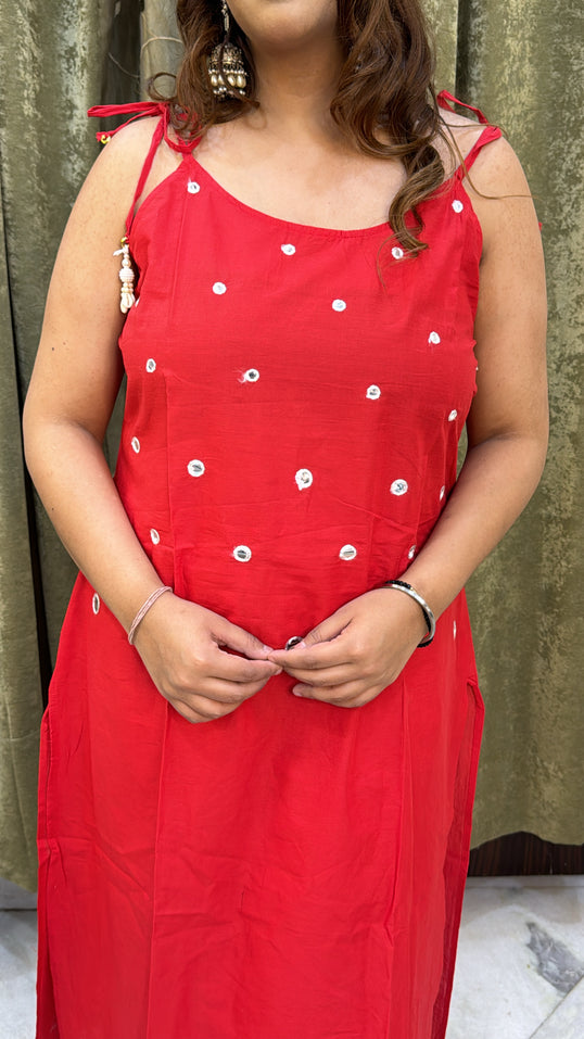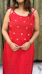 Pure Cotton Red Mirror Work Noodle Strap Kurta Set with Pants – Sizes up to 46
