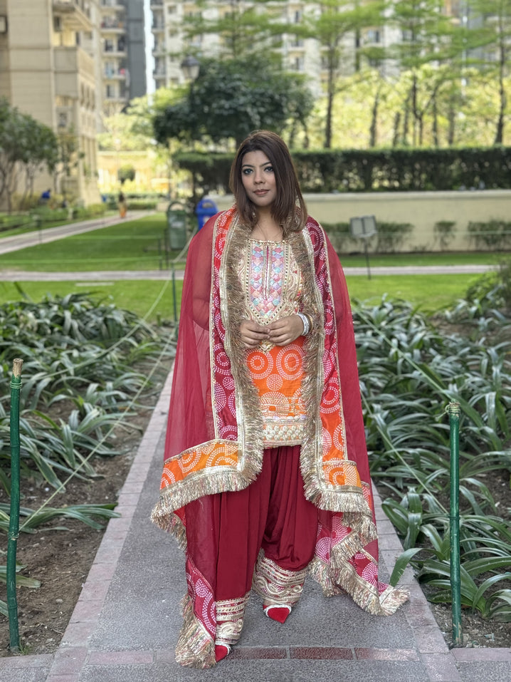 Maroon & Orange Farshi Salwar