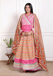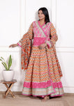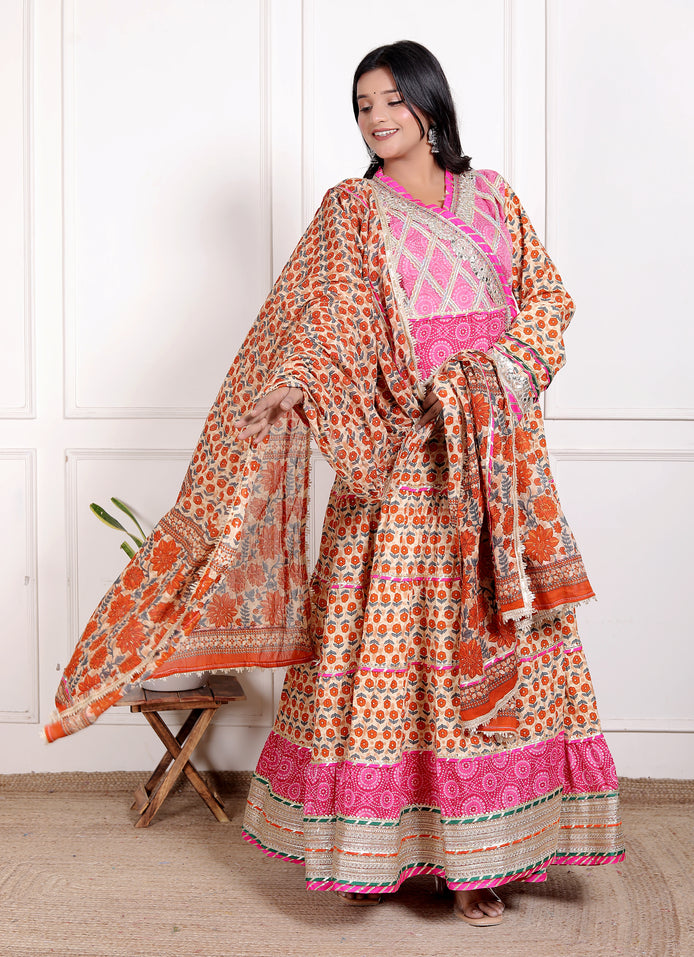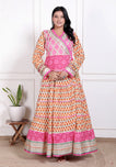 Orange Cotton Anarkali Gown with Matching Cotton Dupatta – Sizes up to 48