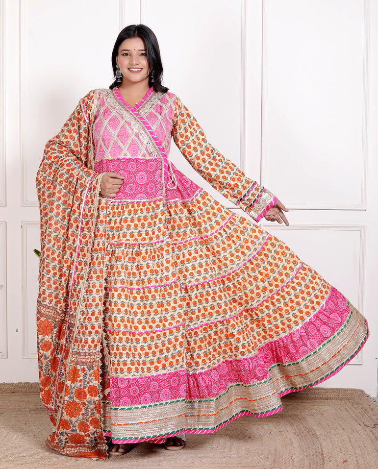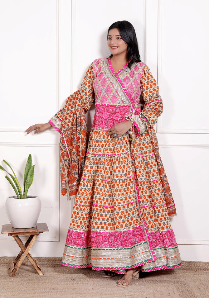 - Two-piece set: Anarkali gown & matching cotton dupatta