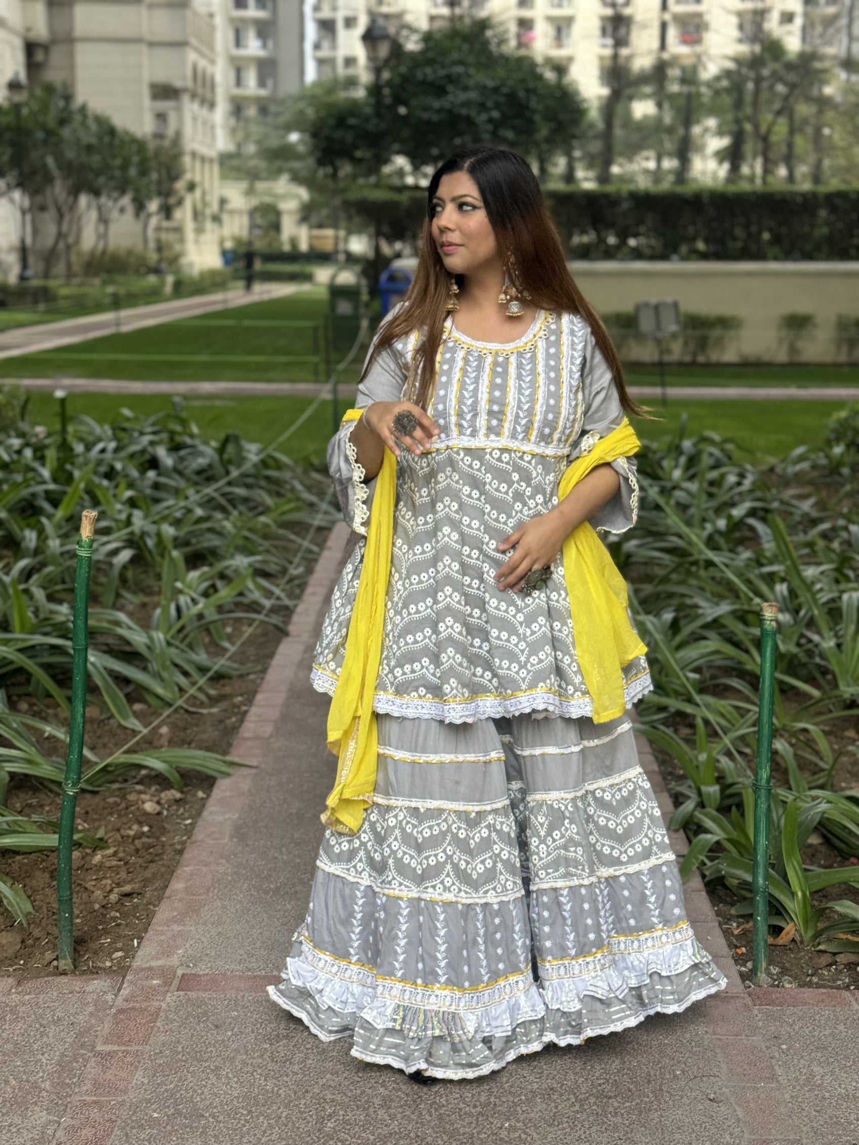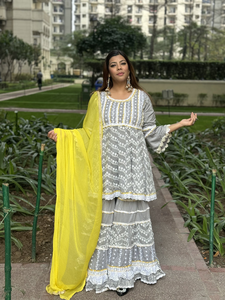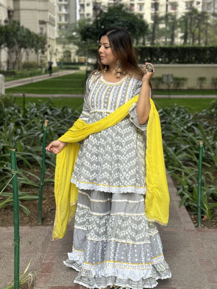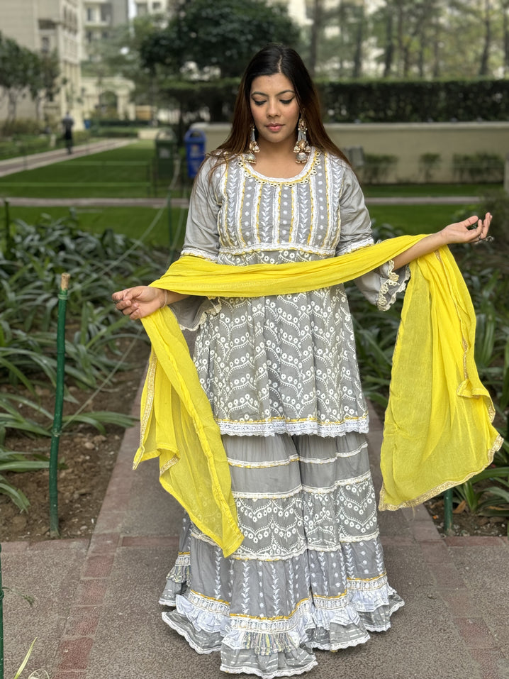 Grey Yellow Mulmul Sharara