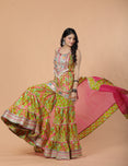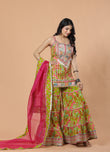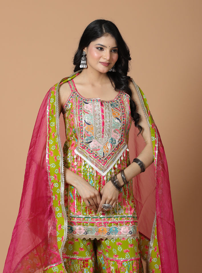 Parrot Green Sharara Set Organza Magenta Dupatta