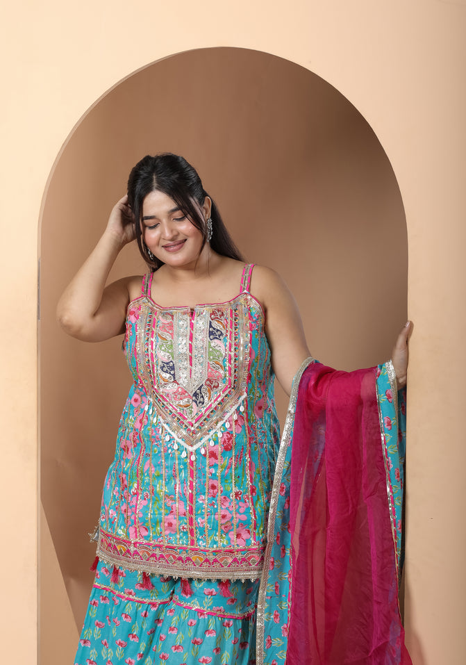 Teal Blue Sharara Set