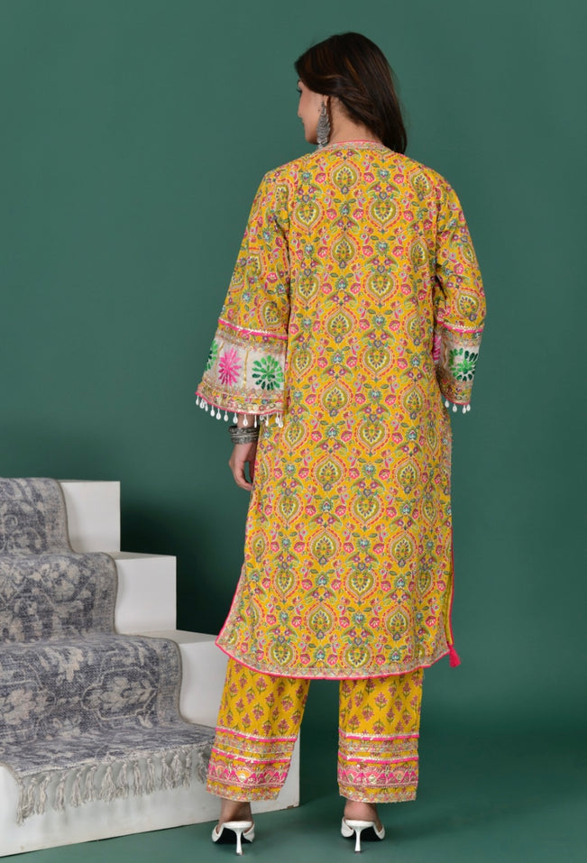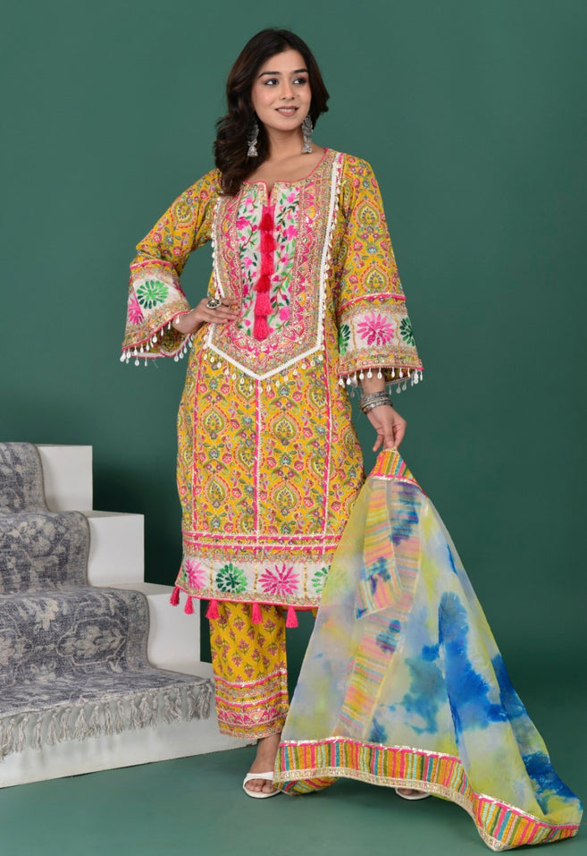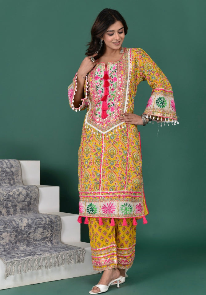 Step into elegance with our Yellow Floral Straight Suit, crafted from rich cotton. A perfect straight suit for Indian festivals, weddings, and celebrations. Available in sizes 34-44.