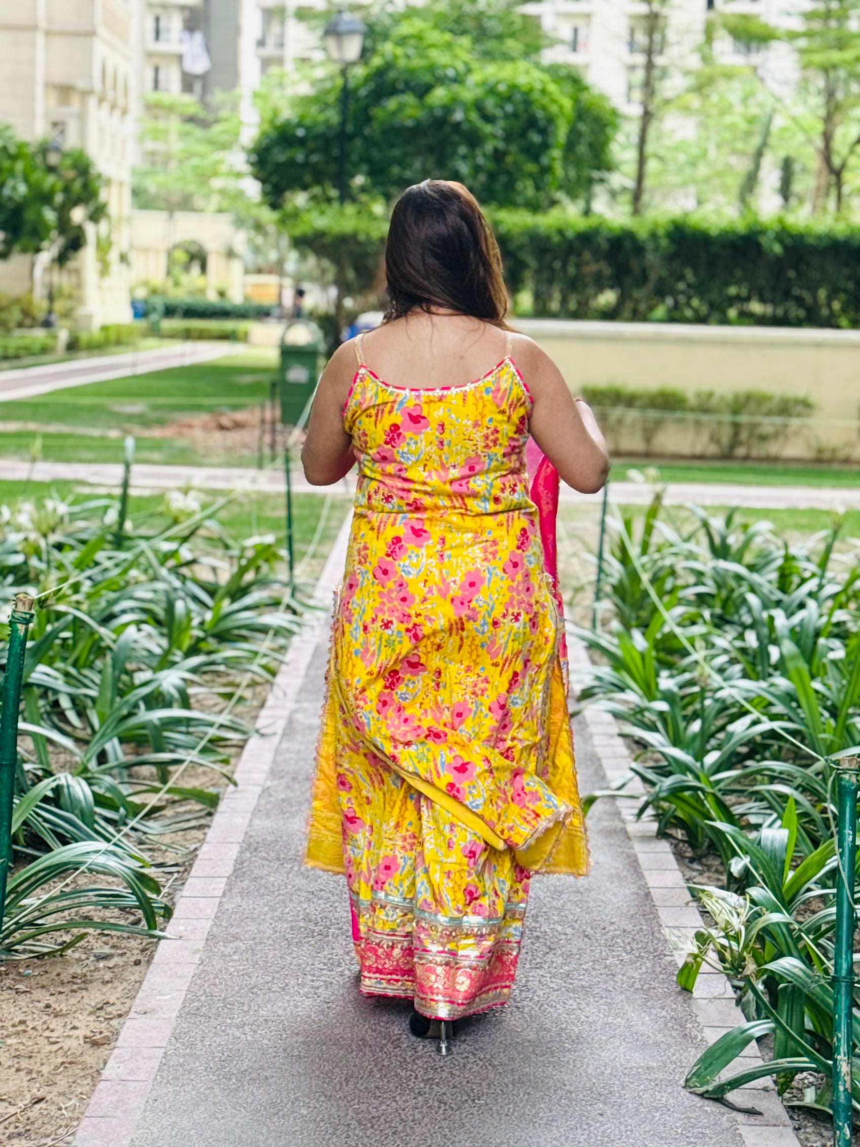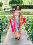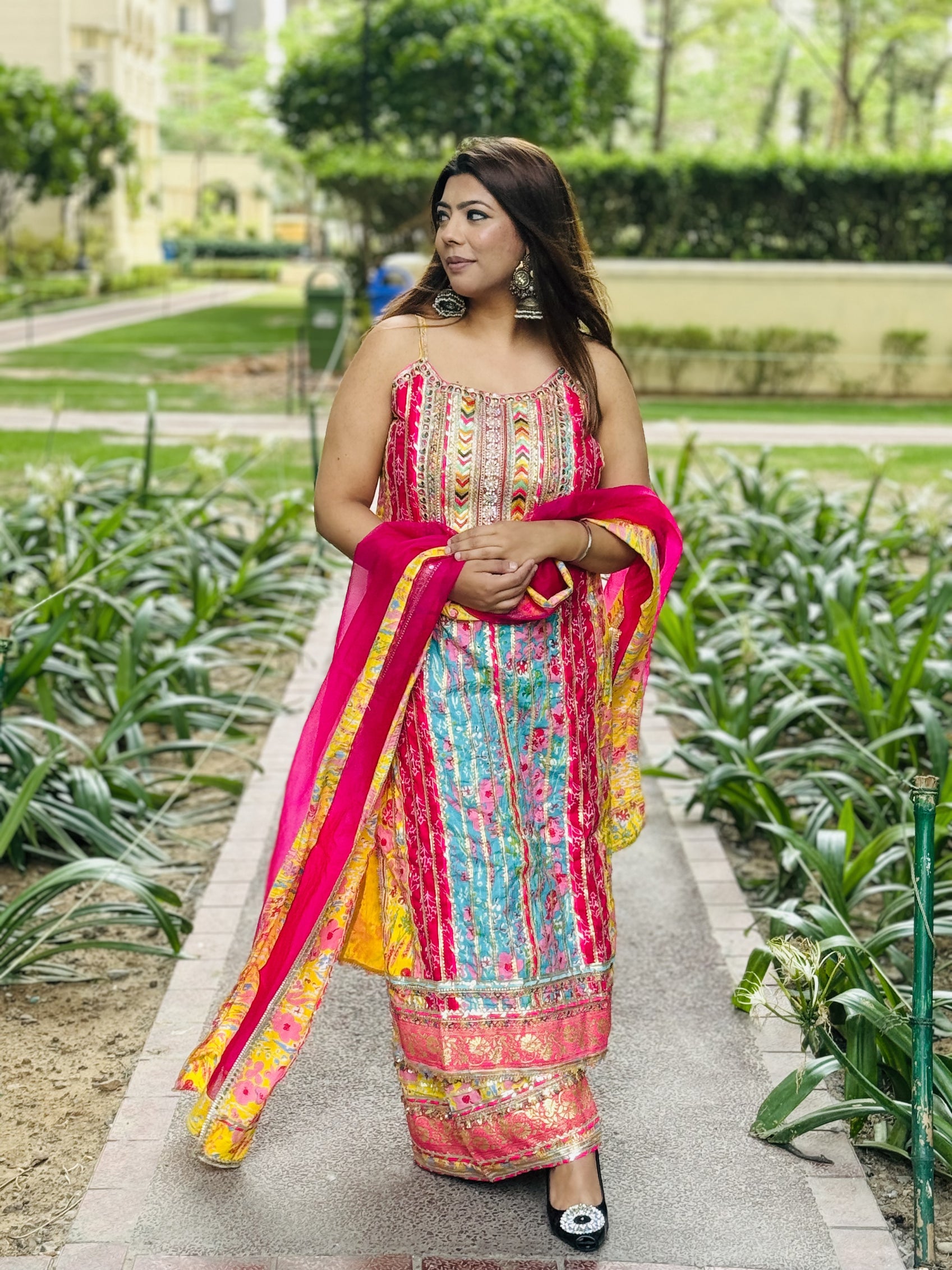 Step into elegance with our Yellow Pink Blue Straight Suit, crafted from rich cotton. A perfect straight suit for Indian festivals, weddings, and celebrations. Available in sizes 34-46.
