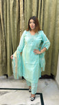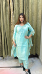 Aqua Blue Cotton Silk Hand-Embroidered Suit with Banarasi Dupatta – Three-Piece Set, Sizes up to 44