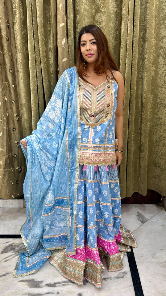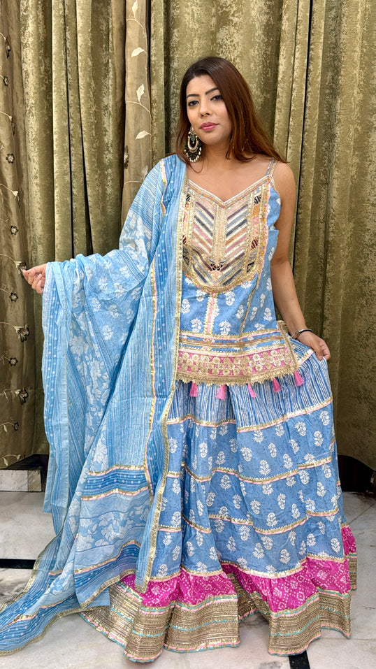 Blue & Pink Gotta Patti 3-Piece Lehenga Set with Long Choli & Dupatta – Ready to Wear | Sizes 34-46