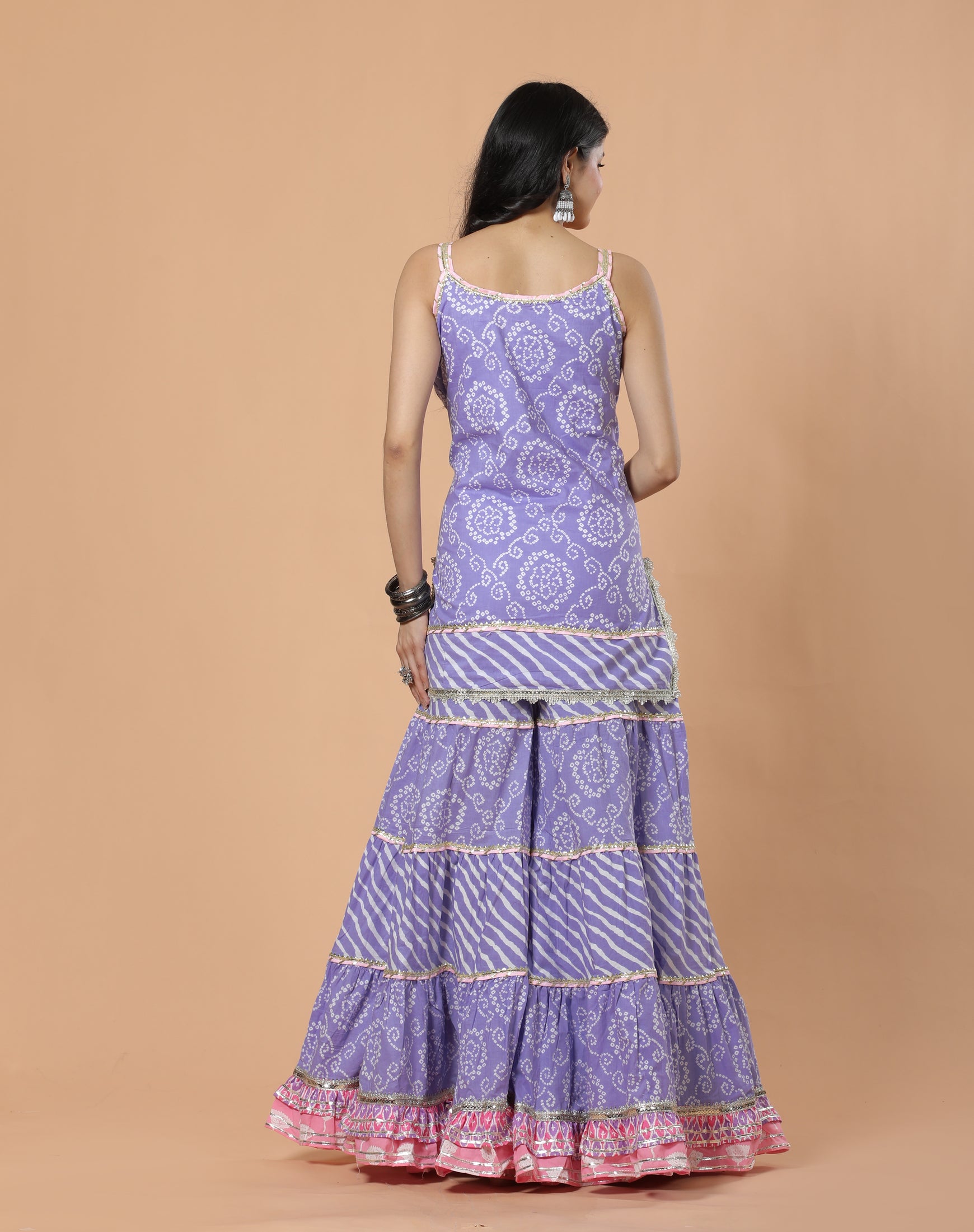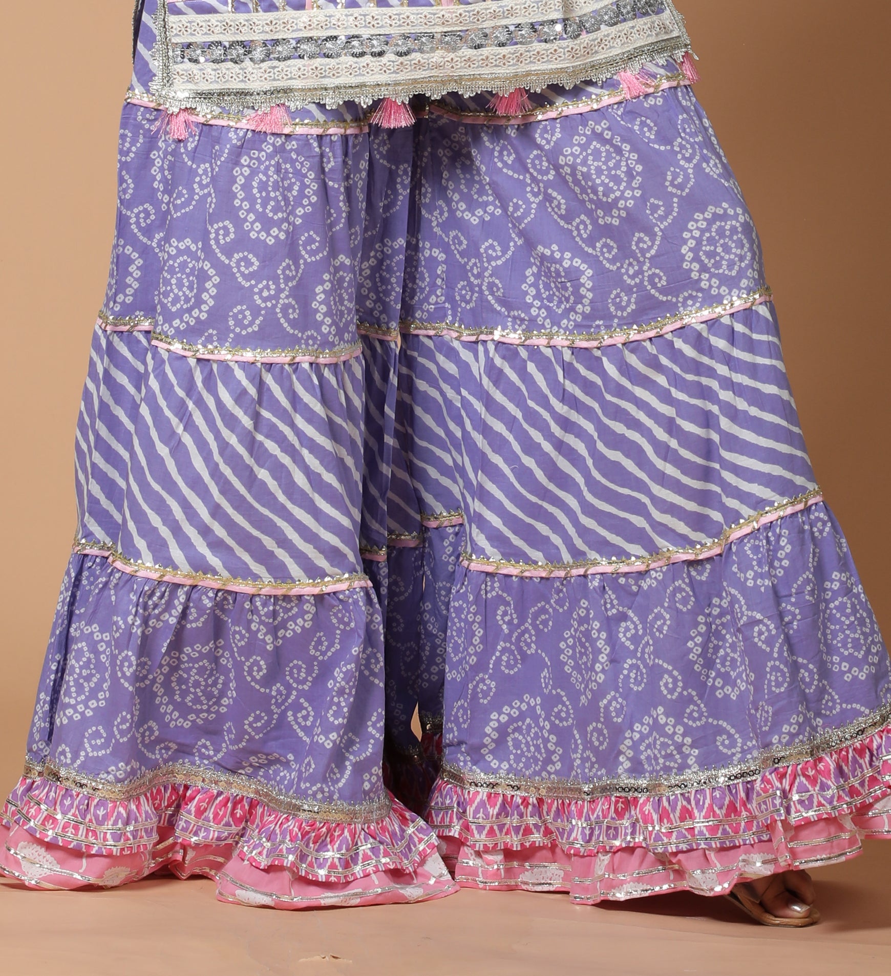 Step into elegance with our Lilac Sharara, crafted from rich cotton. A perfect sharara set for Indian festivals, weddings, and celebrations. Available in sizes 34-46.