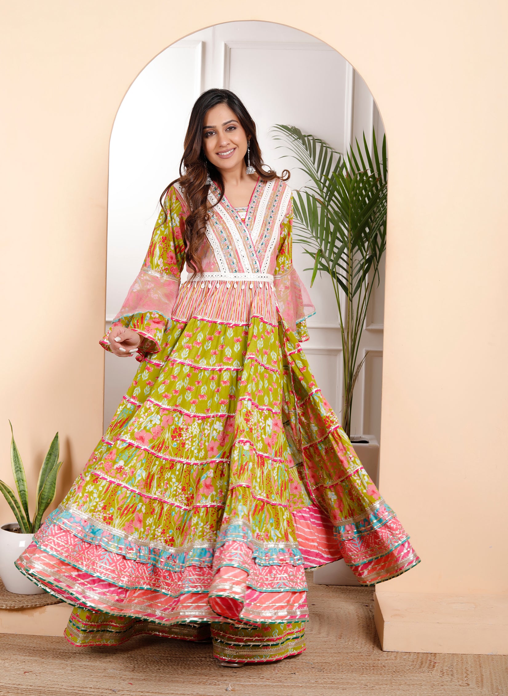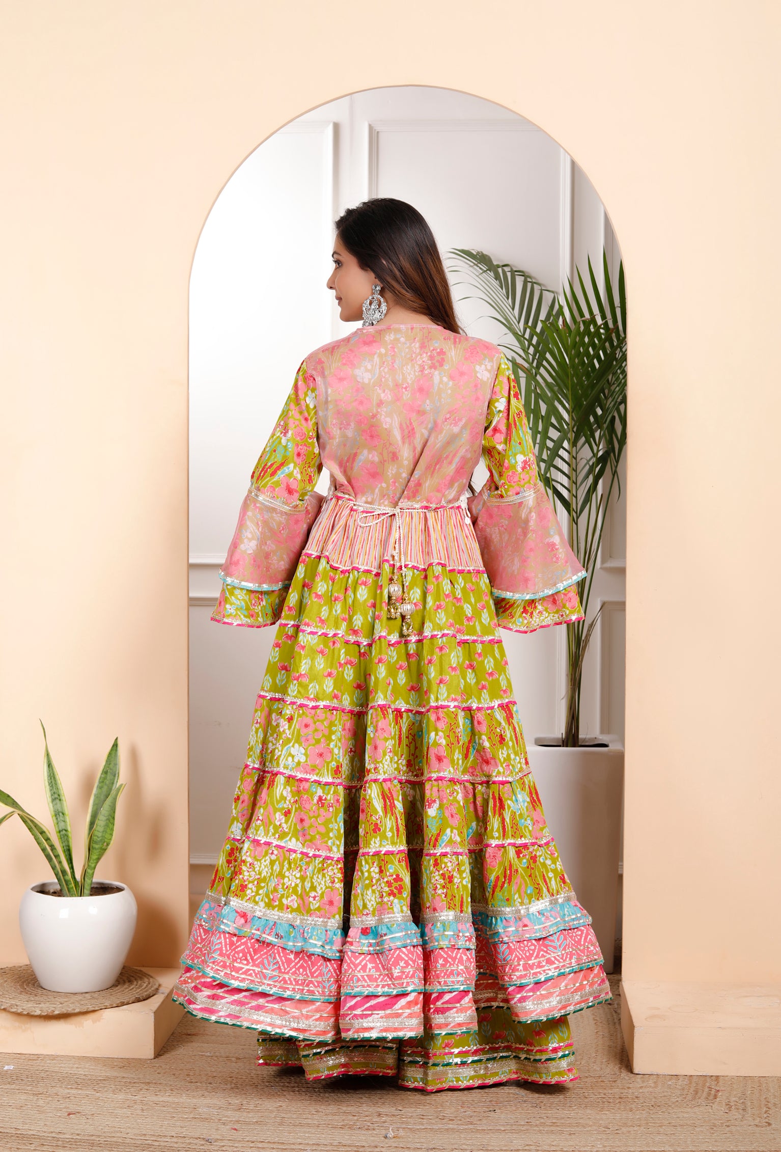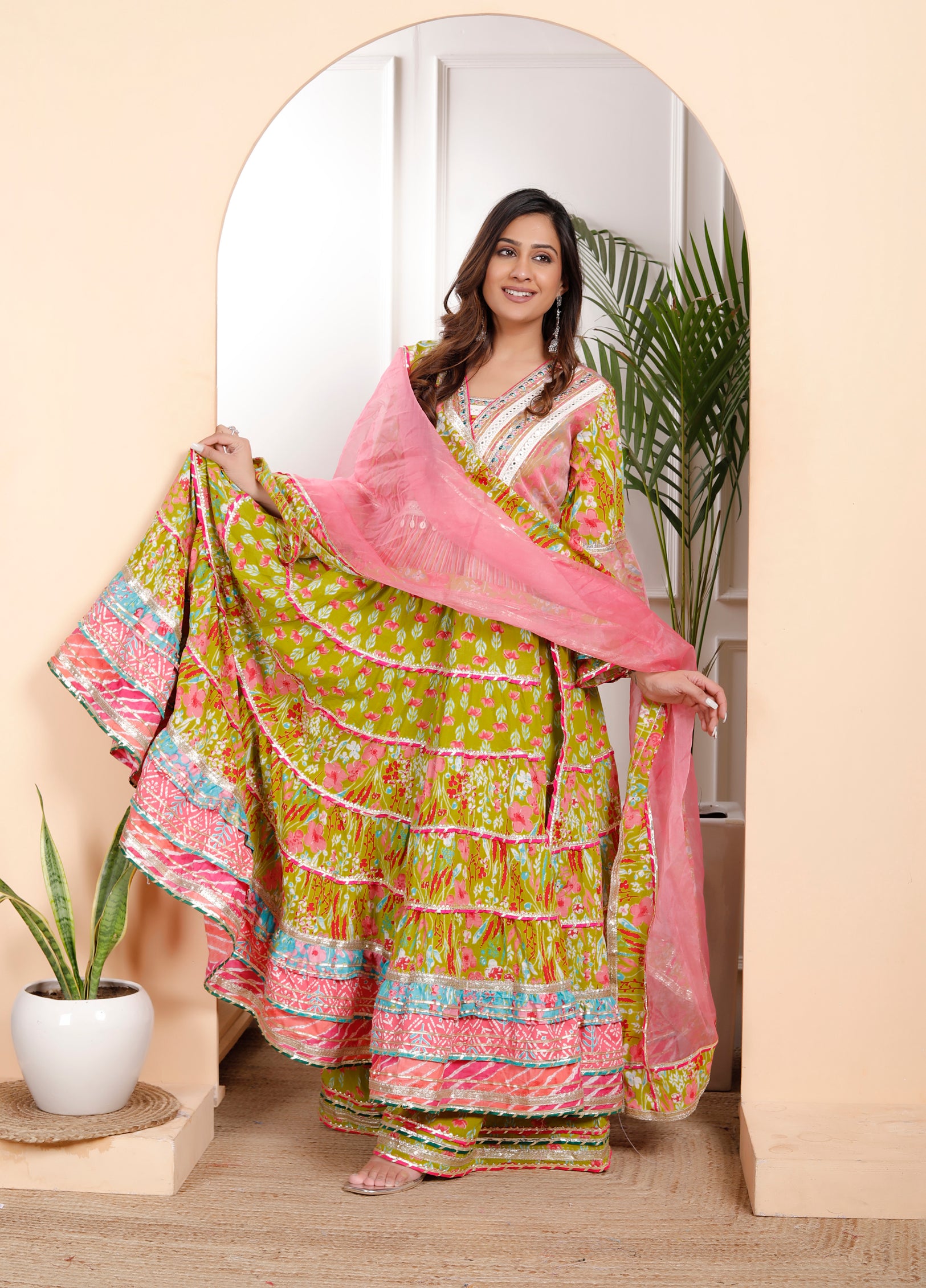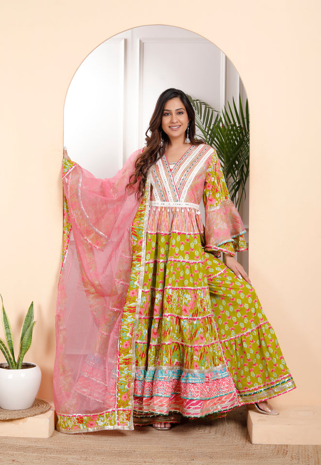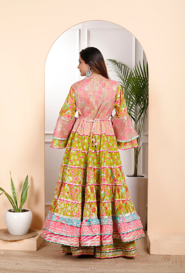 Step into elegance with our Parrot Green Set, crafted from rich cotton. A perfect exclusive special for Indian festivals, weddings, and celebrations. Available in sizes 34-46.